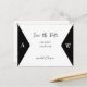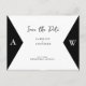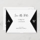 Svartvitt kuvert Stil-kvadrat. Photo Bröllop spara datum. Tillbaka med Bride- och Groom Photo-efternamn samt textwebbplatsen. Vykort. Monogram. Filtret Svart och vitt appliceras på fotot.