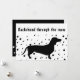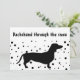 Det här roliga och unika julkortet har ett enkelt svart-vitt färgschema och en modern snygg typsnitt. Framsidan lyder: "Dachshund genom snön" högst upp och längst ner finns en enkel siluett av den korvliknande hunden i det fallande snöflakset! Så sött! Baksidan av kortet visar julhälsningar i samma tecknade typsnitt och familjens namn och år i minimalistisk typografi. Nedan finns åter fallande snö! Hälsningarna kan enkelt anpassas för en personlig touch. Denna unika, trendiga och moderna design kommer säkert att få dig att sticka ut under den här julen!