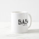 Baba kaffemugg design med etableringsår med en svart stämpel font satt på en vit bakgrund. Klicka på Anpassa för att redigera bakgrundsfärgen!. Besök vår butik för att se denna mugg i ett stort urval av farfarsnamn.