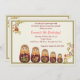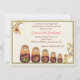 En charmig inbjudan till en liten flickas födelsedagsfirande med fem Babushka dockor.
