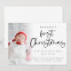 Modern Baby 1:a julfoto födelsedag. Underbar att meddela nyheten om er jul baby. Ett vackert manus för första jul och resten av texten är lätt att anpassa. Byt ut exempelfotot mot ett eget. Ett övertäckt övertäckt lagrar ligger ovanpå fotot så det tonas ut när det når mitten med texten delvis överlagd ovanpå.