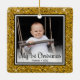 Denna vackra Baby-1:a julfotomornament med guld glitter kant, ord "Min 1:a jul", ditt barns namn och året kommer att se vackert ut på träd. Du kommer att värna om det och njuta av att ta det varje år för att sätta på dig träd.