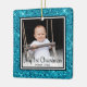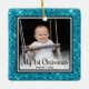 Den vackra Baby-1:a julfotomornament med ett akva glitter kant, ord "Min första jul", ditt barns namn och året kommer att se vackert ut på träd. Du kommer att värna om det och njuta av att ta det varje år för att sätta på dig träd.
