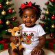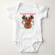 Julkläder, baby, med söta renar med rött knä och Julgran ljus runt det är antenner. Anpassningsbar Baby namn och datum. Text kan ändras eller tas bort.