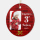 Fira din baby 3:e jul med en ivrig prydnad för träd. Detta keramiska prydnadsämne är ett underbart sätt att starta en familjetradition och ge ditt barn en kulturgåva senare i livet. Bakgrunden är en underbar tegel mönster som ger utseendet av en kamrat till designen. Lägg till ditt lilla foto, anpassa namn och år och få en underbar påminnelse om ett ögonblick som fångas i tid. Design ©Vann-Horn Kreativ Photo & Designs.