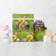 Young wild animals are posing in tall green savannah grass next to a large yellow number two