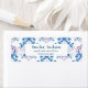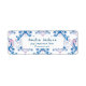 Ett baby brinner på party-babyduschens returadressetikett.Denna könsneutrala babydusch har tekopp med rosa lila och blåa blommor och fjärilar med makaron och papper struktur bakgrund,En perfekt könsneutral party--tema för rosterdusch.