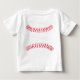 En unik t-shirt-design för baseball spädbarn, med stora röda sömmar tryckta på båda sidor. Det finns en textruta på anpassningsbarna där du kan skriva in vad du vill - baby namn, team namn, etc. Gör en söt babyduschpresent under basebollsäsongen!