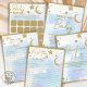 Baby Bingo Baby Shower Game! Den här babyduschmatchen har guld måne och stjärnor mot bakgrund av ett vismiskt moln. Det här är en perfekt för könsneutrala babyduschar med mera! Samordna inbjudningar till babydusch, dekor och skyltar finns också tillgängliga.