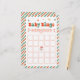 Lägg till festlig roligt till firande med Baby Bingo-julspelet för babykläder i Personligen, perfekt för mysiga julklappar för babyduschidéer. Den här söta designen passar perfekt in i vilken julklapp som helst, med en lekfull helgdag charm och vid babyduschtemat vid Santa baby. Det är idealiskt för december-babyduschteman och tillför glädje till december-babyduschidéer. Gratulerar till din lille Tomten baby med en spelgäst till kärlek!