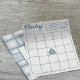 Baby bingo-spelet lakan är perfekt för babyduschar med ett nautiskt tema. De har nautisk grafik och ett blått och krämt färg-schema. På baksidan är det en punkt där du kan lägga till personlig.