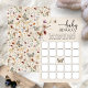 Baby Bingospel. Letar du efter en unik bohemisk vibe för att imponera på dina vänner och familj? Chic och stilren, denna vackra färgpalett av tan, brun, rost, terrakotta och bränd orange är årets trendtema för baby shower. Rustika torkade gräs, blad och vintage vildblommor är fantastiska detaljer att lägga till din moderna boho-chic baby shower. All brevpapper är professionellt designad av Painted Paperie.