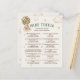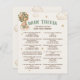 Teddybjörn med salviagröna beige elfenbensvita solbrända ballonger Baby Shower-partyspel baby trivia med anpassningsbar text, med den söteste björnen som svävar högt med söta varmluftsballonger! Detta bohemiska gröna teddybjörntema trivia-spel är perfekt för könsneutrala baby shower-fester, som firar flickors eller pojkars ankomst. Tänk dig en söt baby pojke teddybjörn med en grön slinga runt halsen, som håller i ballonger med förtjusning. Glöm inte att utforska hela kollektionen!
