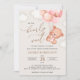 Vänner och familj i inbjudan i stil och ange tonen för din speciella dag med den här charmerande babyduschinbjudan. Utformningsfunktionerna i baby har rosa ballonger på beige bakgrund.