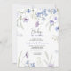 Denna trendiga Baby in bloom-inbjudan har akvarell ljusblå och violetta vilda blommor, gröna blad. Njut av det!