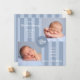 Anpassningsbar Blåstripe Monogram Square Photo Birth-meddelande. Fånga magin i din lilla ankomst med vår vackert utformade design, anpassade för att spegla ditt unika stil. Det här rosa födelsemärkningskortet är utformat med kärlek och med uppmärksamhet på detaljer - perfekt till nyheterna om ditt glädjekvarsel med familj och vänner. födelsemeddelande, ljusblått, pojke, nyfödda foton, fotosamlingar, modernt, traditionellt, monogram