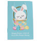 Anpassa den här söta Påskharns presentväska med din egen personlig med dina barn namn i vitt skript. Den här fina kaninen sitter i en söt Påsk basket på en söt baby blue påse.