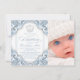 Prins baptism-inbjudan med vackert diamant krona och elegant skript på en baby blue och vit snurrande bakgrund. Den här eleganten blåprinsinbjudan är lätt att anpassa för evenemanget genom att helt enkelt lägga till din foto- och händelseinformation i teckensnittet stil och färg, och den text du väljer. Detta är en tryckt design utan verkliga diamanter, glitter etc.