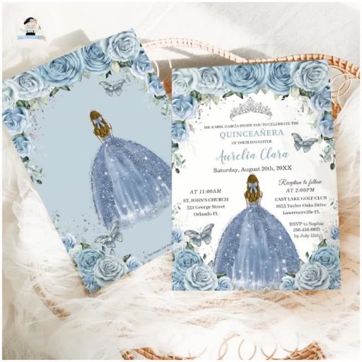 Soft Baby Blue Floral Silver Quinceanera Birthday Designad av The Happy Cat Studio