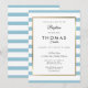 Baby blå-rand dop eller dop-inbjudan med en elegant falsk guld folie kant som ramar in dina speciella fest detaljer i modern typsnitt. Designad av Thisisnotme©