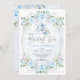 Tea party tog upp möhippa inbjudan i söt baby blue och silver. Klicka på knappen "anpassa ytterligare" om du vill ordna om och formatera stil och placera texten. Kommer med ett matchande blommönster baksida.