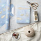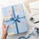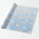 En vattenfärg målade barns inslagning pappra lakan i ljusblå bakgrund med koraller, en baby blue val och en snävval, i ett baby blue och krämt vanilj färg.