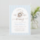 Celebrate a sweet baby boy with this A Baby Is Brewing baby shower invitation featuring a hand drawn coffee cup, soft blue and warm brown tones, and delicate bow details.