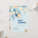 A cute baby boy shower invitation featuring a watercolor teddy bear with blue balloons, clouds and stars. Designed in soft pastel blue for a warm and modern baby celebration. Completely customizable with name, date, location and RSVP details. Perfect for baby boy shower parties, gender reveals and welcome baby celebrations. Printed with sharp colors on premium paper for a beautiful keepsake.