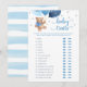 Köp det här redigerbara kortet och njut av högkvalitativ Blue- och Silver-bubblor Nalle Baby Traits Game för din händelse! Det här är en kortmall, du kan anpassa kortet, ändra texten som du vill! Babykläder - aktiviteter! Gutningsspel.