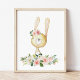 Baby Bunny, Woodland Animals, Boho, Rosa Flowers Fototryck