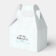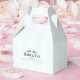 A chic, personalized favour box featuring a delicate bow and baby’s name—perfect for adding a refined, minimalist touch to your Sip & See or baby celebration.
