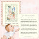 Med en vacker anpassad design av den välsignade Jungfru Mary som förbiser lite baby i ett skåp. På baksidan finns en traditionell katolsk konsekrationsbön för barnet till Mary.