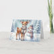 Baby Deer with Snowman Christmas Holiday Card Helgkort