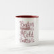 Baby:s Kall utanför avfyrade burgundskript med två tonkaffe Mugg. Konfektens mugg-design har "Baby IT's Kall Outside"-blek, modern manusförfattartypografi.