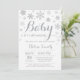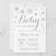 Baby dess Kall utanför Winter Baby Shower-inbjudan. Pojken eller Flickbabyskans inbjudan. Winter Helgdag Baby Shower Inbjudan. Grått Snöflingor. WhiteGary Background.