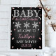 Fira i stil med trendigets välkomstskylt för babyduschen. Utformningen är enkel att anpassa med din egen formulering och din familj och dina vänner blir glada när de ser detta fantastiska tecken på party. Matchande objekt i party finns i samlingen.