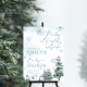 Baby, det är Kallet Utsidan Välkomstskylt poster Vinter Wonderland babyduschvälkomstskylt med blått snöflingor och gräs träd.