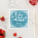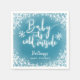 Vintern under underlandsterminen duschar papper napkin med vitt handskript med typografi som säger "baby det är kall utanför" med glödande snöflingor. Bakgrunden är turkosa blå. Underbar för en pojkdusch under julsäsongen.