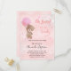 För en babydusch som firar en baby gir. En rosa bakgrund med faux silver glitter damm. En nalle som håller en rosa ballong. Anpassa och lägg till närmare uppgifter om namn i mamma och party. Och Barly är skriven med ett handskript i stil.