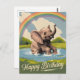 Söt baby elefant med regnbåge önskar glad födelsedag. Ett vintage vykort för barn i alla åldrar.