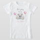 Den här charmerande, handritade illustrationen visar ett baby-elefant sitta bland ömtåliga peonier och eukalyptus löv, som skapar en seren och vismisk atmosfär för din barnduschstorasyster t-shirt. Klicka bara på knappen "Anpassa" för att lägga till meddelandet.