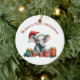 Anpassa den berömvärda baby-elefantens första jul, med julklapp och omgiven av färgstarka gåvor, perfekt för nyfödda eller som gåva.