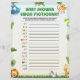 Gissa babyduschen ord och fraser baserade på känslomässiga ledtrådar. Hur många höger får du? Kontakta oss direkt om du behöver en kopia av svaren för det här spelet. Vi skulle vara lycklig för att ge det till alla som har beställt spelet.