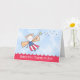 Baby första hälsningskort i fjärde juli visar en vit och blå färgreduk med ett stjärnigt trollspö. Röda och blå gnistor följer när hon flyger över ljusa blå himmel med känsliga moln. Sentiment visas tvärs över grund i rödskalat pub.