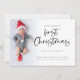 Baby First Christmas Photo 2026 Calendar. Available digitally and printed. Lovely to celebrate your baby's first Christmas. A playful set script for First Christmas and the rest of the text is easy to personalise. Replace the sample photo with your own. A gradient overlay layer is on top of your photo so it fades out as it reaches the center with the text partially overlaid on top. With a handy 2026 calendar on the other side with your happy new year greeting.