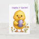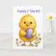 Created to mark a baby’s very first Easter, this sweet springtime design captures a quiet moment of new beginnings. A soft yellow chick gently cradles a purple Easter egg, framed by light floral details that suggest warmth, care, and early memories being made. The gentle watercolor style gives this design a timeless keepsake feel, making it a thoughtful choice for parents, relatives, or friends welcoming a little one into their first Easter season.