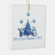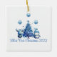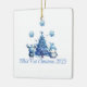 Fira din baby i julas med vackra vattenfärgsillustrationer av en blå renar och snögubbe framför ett vackert blått Julgran. Anpassade för baby namn och datum.