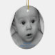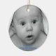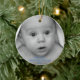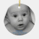 Helt anpassad julprydnad har fullt storlekt foto av pojke, med 3 linjer för namn, meddelande och år.