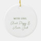 Fira din baby första jul med ett så speciellt prydnadsföremål som denna milstolpe. Den här runda prydnadsfärgen har en söt vit elefant med rosa blommor som krona i mitten, som symboliserar kärlek och glädje. kan anpassa texten framför prydnadsföremål. På baksidan finns utrymme för personlig, till exempel ett uppriktigt meddelande och namn i skriptcalligrafi, skapar du det i sanning en av en typ. Designad med ett rent serif-typsnitt ger den här prydnadsfärgen din helgdag en nyck och nostalgisk beröring. Perfekt som en gåva eller keepy för att i åratal vårda komen.