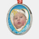 Lägg enkelt ditt nyfödd bebis-foto till detta vackra Baby blue och Guld Baby Första julhjärtsornament tillsammans med födelseåret. Om du vill ladda upp fotot snabbt Användor du i rutan Bild. Klicka på länken Anpassa ytterligare för att justera fotot efter behov.